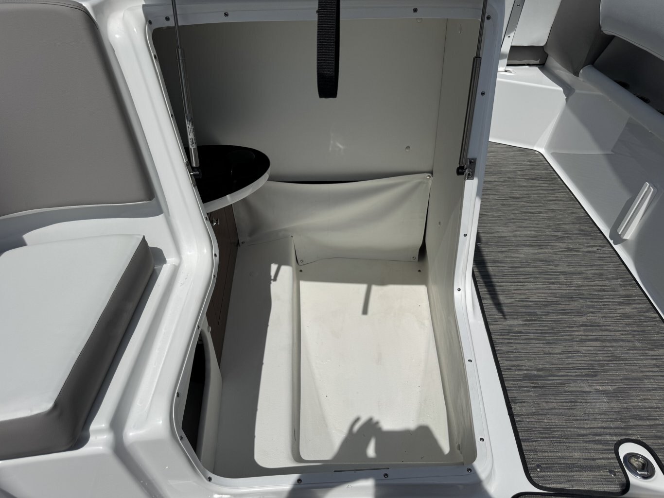 • Ski locker, in-floor, molded fiberglass finish, w/mat
