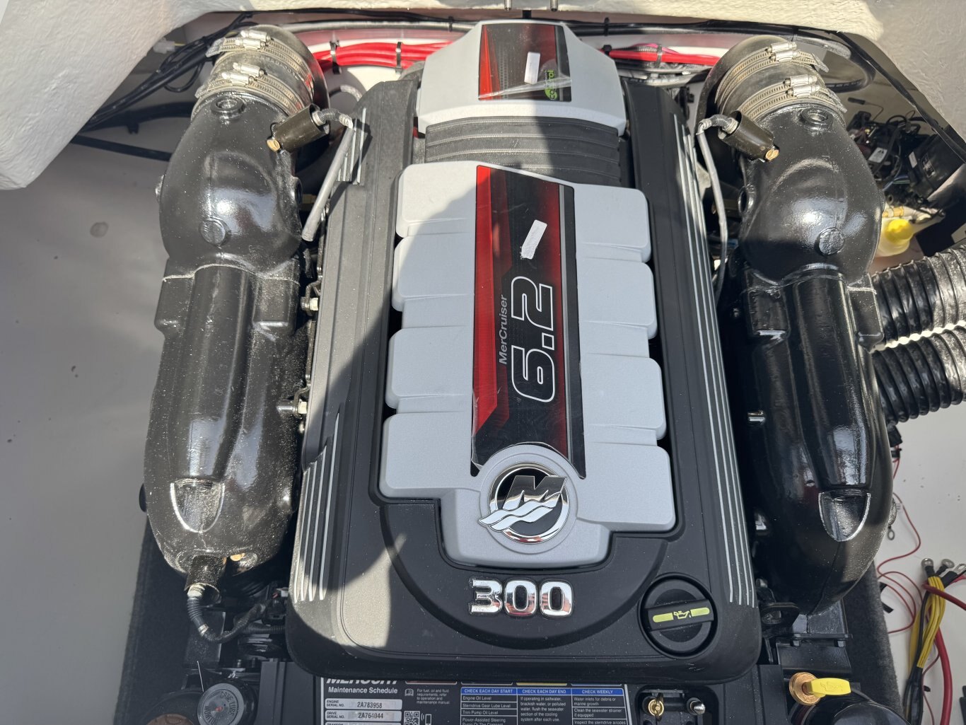 Mercruiser 6.2L 300HP Dual Prop DTS, Custom Tandem Trailer, Bimini Top, Extended Swim Platform, Cockpit Table, Battery Switch, Bow and Cockpit Cover, Docking Lights, XL Package, Walk Thru-Doors,