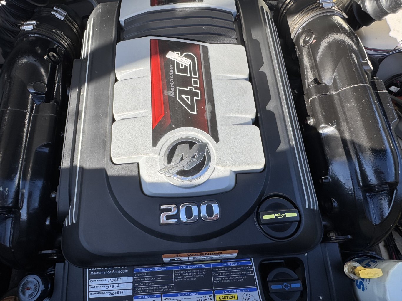 Mercruiser 4.5L 200HP, 189 hours, Custom Trailer, Wakeboard Tower with Bimini, Extended Swim Platform, Premium Audio Package, Sea Dek Cockpit Flooring, Bow and Cockpit Cover, Depth Finder
