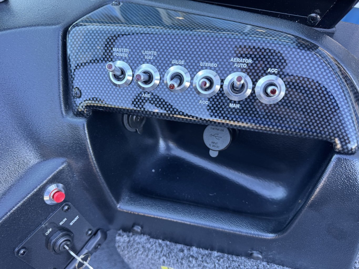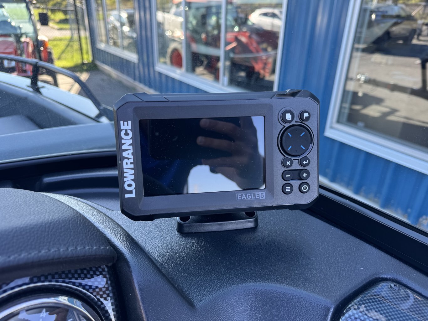 Mercury 115HP Pro XS, Trailer, Bow Cushions & Rails, Lowrance Eagle 5 Chartplotter/ Fish Finder, Minn Kota PD55 Trolling Motor, 2 Bank Battery Charger, Bluetooth Stereo W/ 4 Speakers , Cover, Ski Pylon, 3 Pedestal Seats, 2 Stern Deck Jump Seats, Livewell, Flip up Stainless Cleats, Vinyl Cockpit Floor, Tilt Steering, Ratchet Tie Downs
