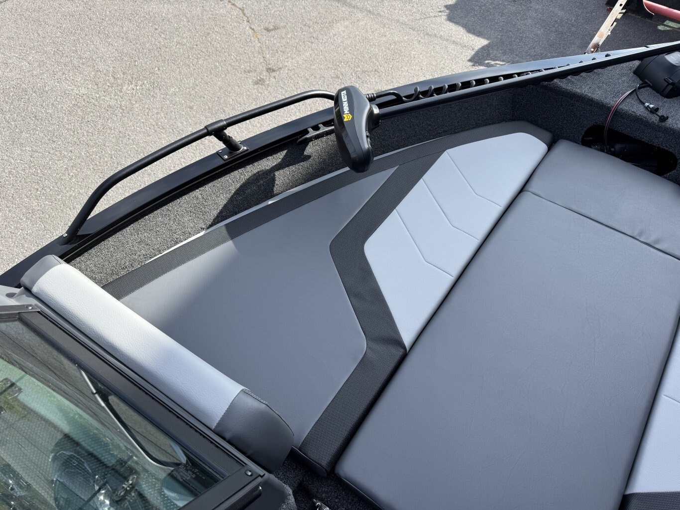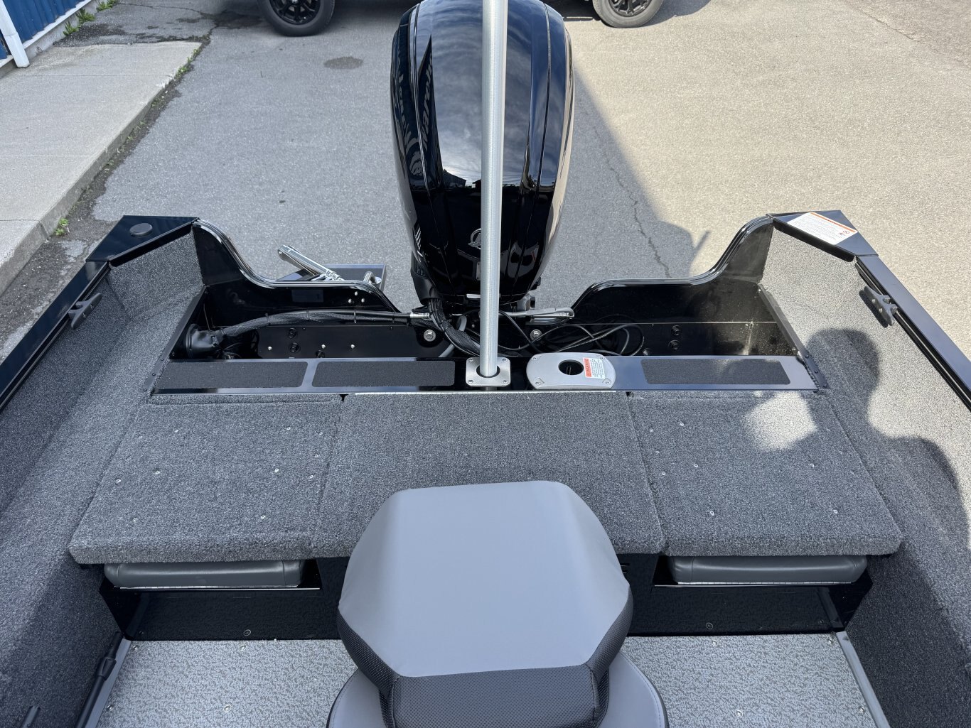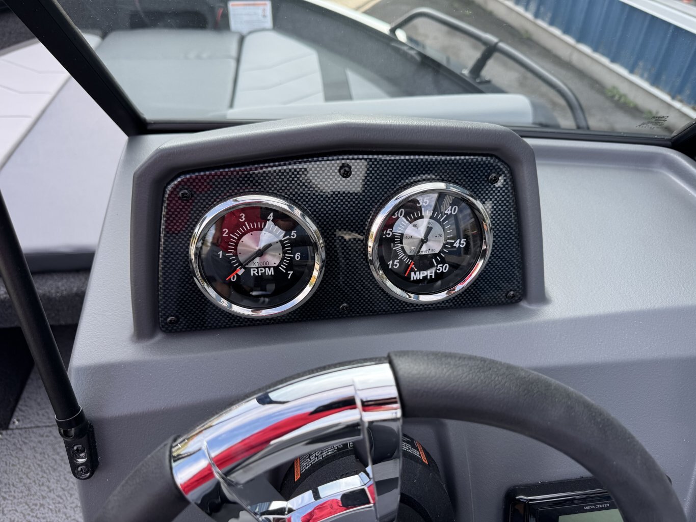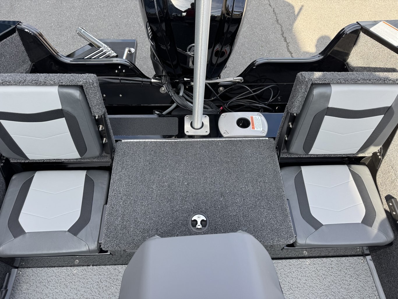 The solid helm of a Lowe Fish and Ski has cool looking accents, 4:1 anti-feedback steering, and a soft grip wheel. Sharp full-size tach, speed, fuel, volt & trim gauges – with room left for other devices.