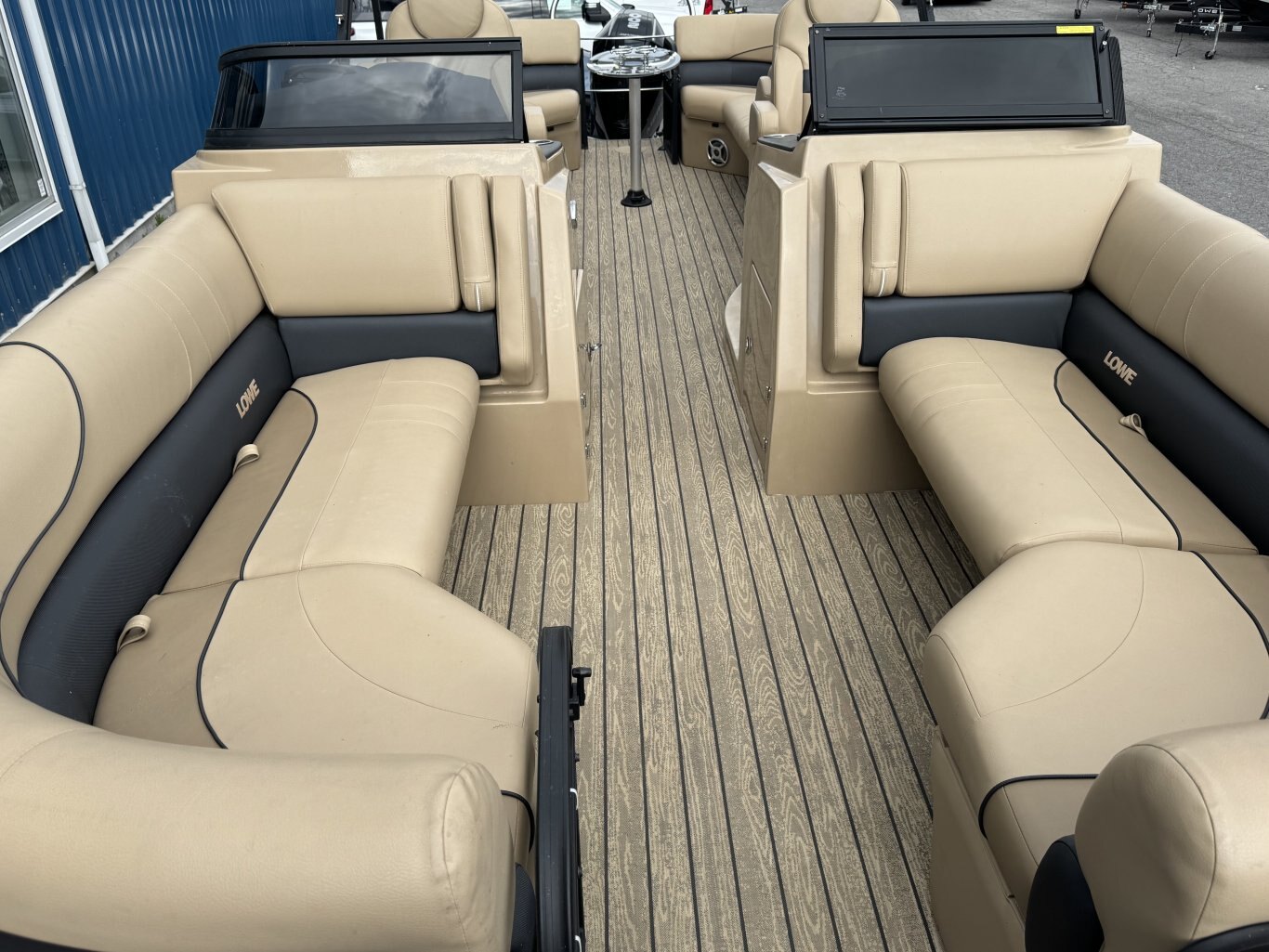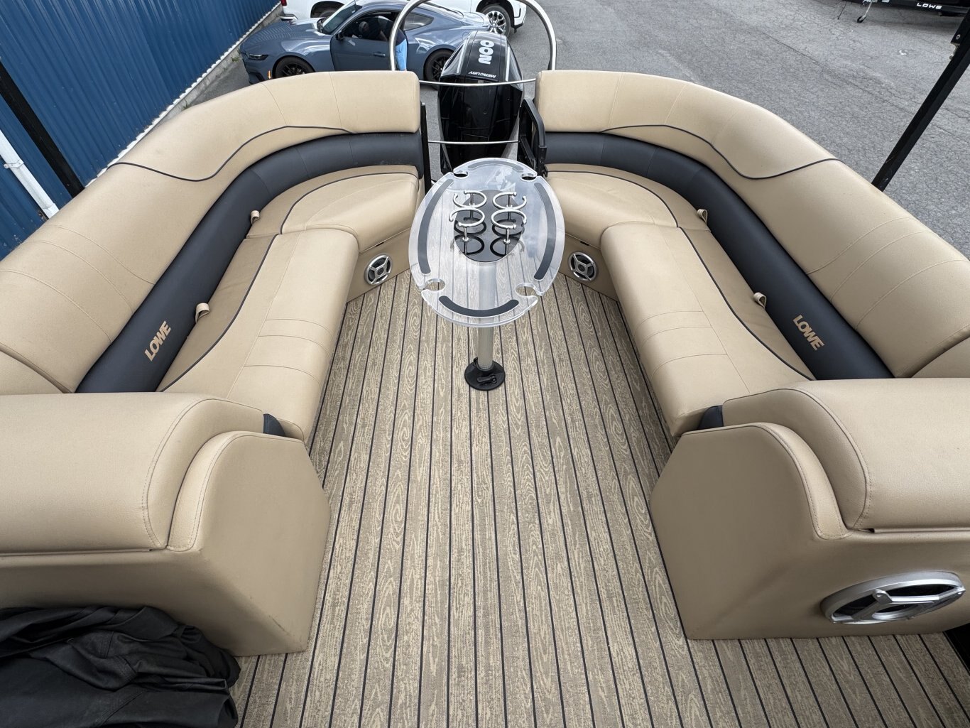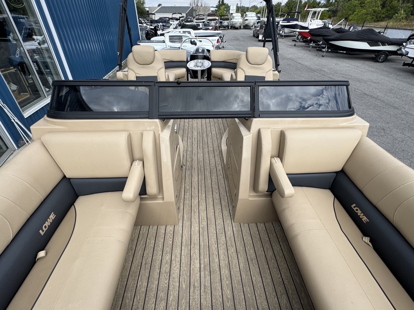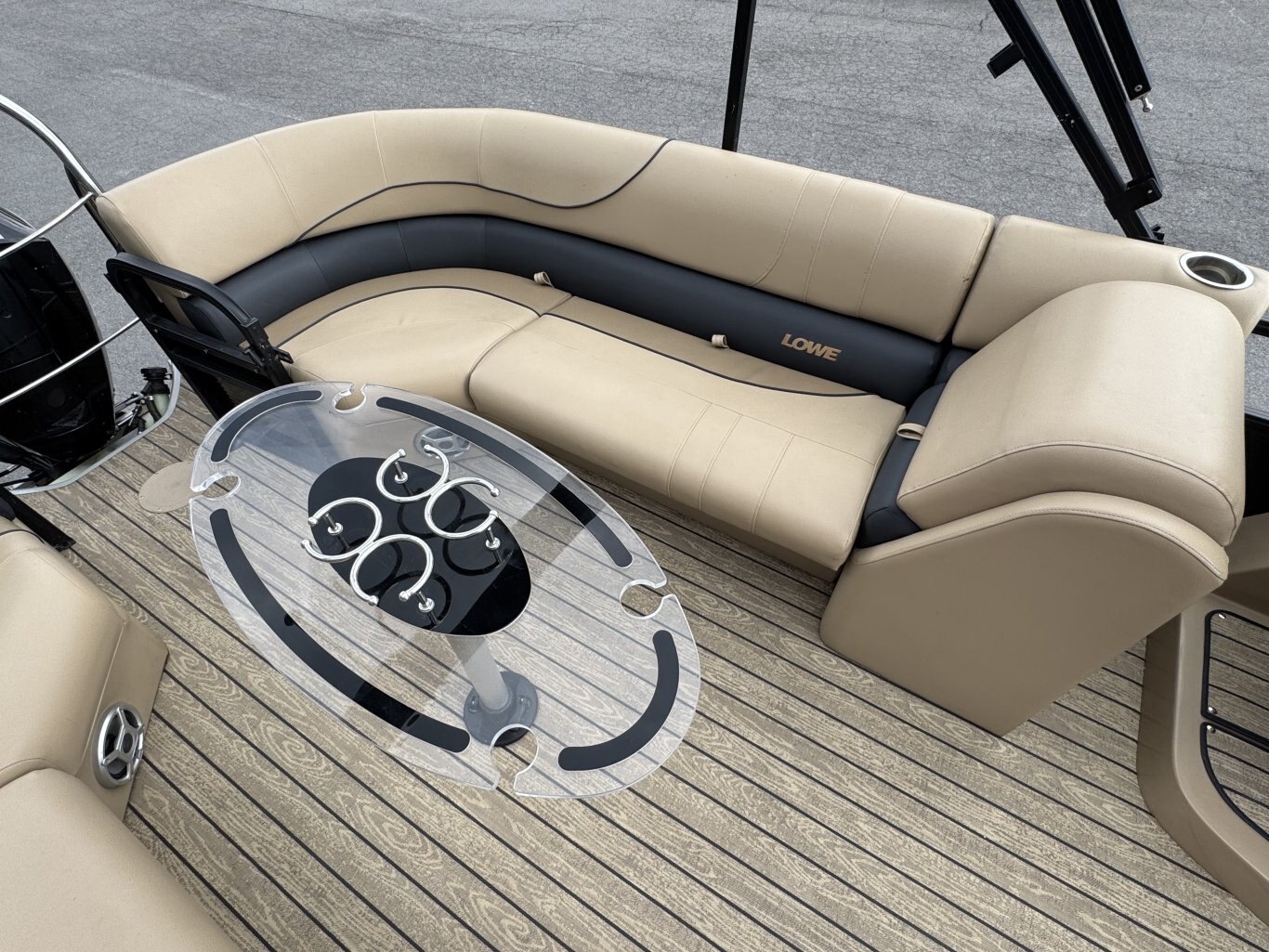 | The SS250 WS is a game-changer in the Lowe Boats pontoon lineup. The sleek sporty style of the new tinted glass windshield is a true head-turner. Encountering less than perfect conditions is always a possibility on the water. And with today’s pontoons continuing to get faster, you and your passengers will love being behind the stylish-yet-functional windshield and guarded against the elements. There is no sacrifice of space, storage, or comfort, just open the walk-through windshield hatch to enjoy the abundant foredeck seating. There is plenty of room and enticing amenities to entertain and play all day. The new SuperSport 25 Windshield is spacious, stylish, smart, and it looks awesome on the water. |