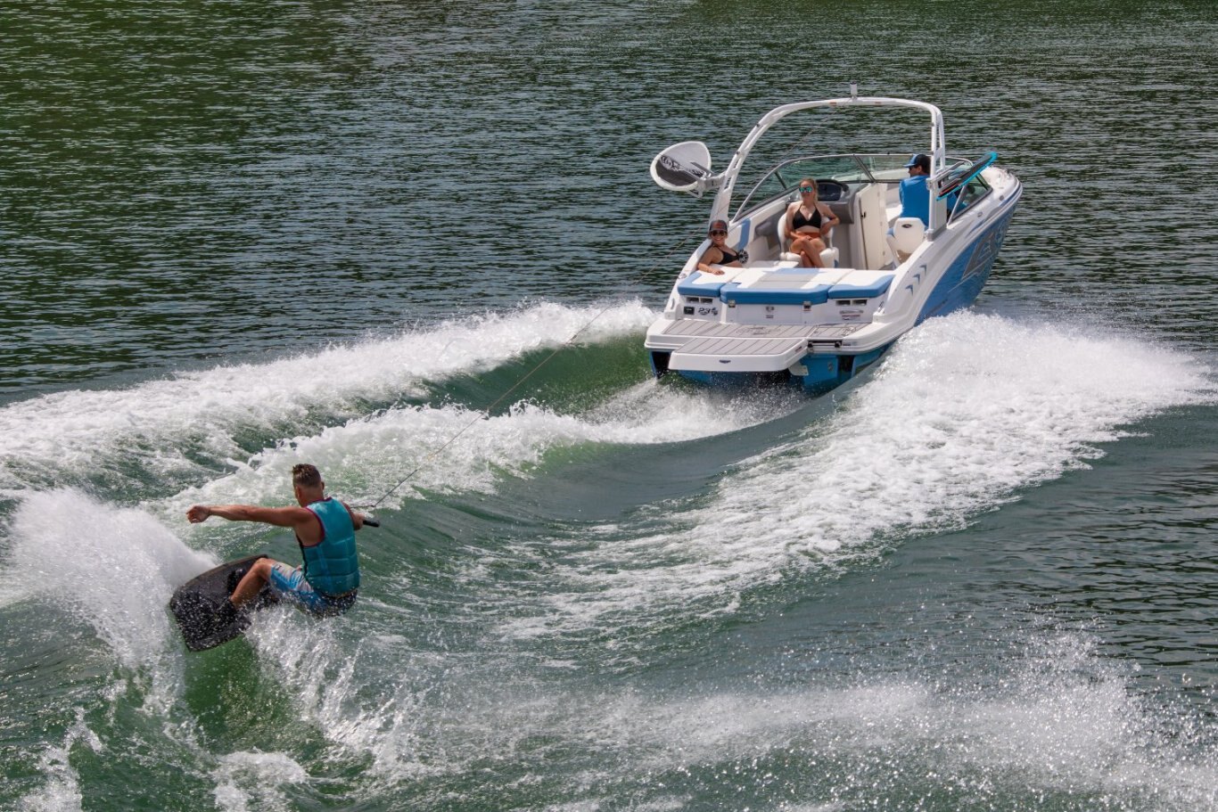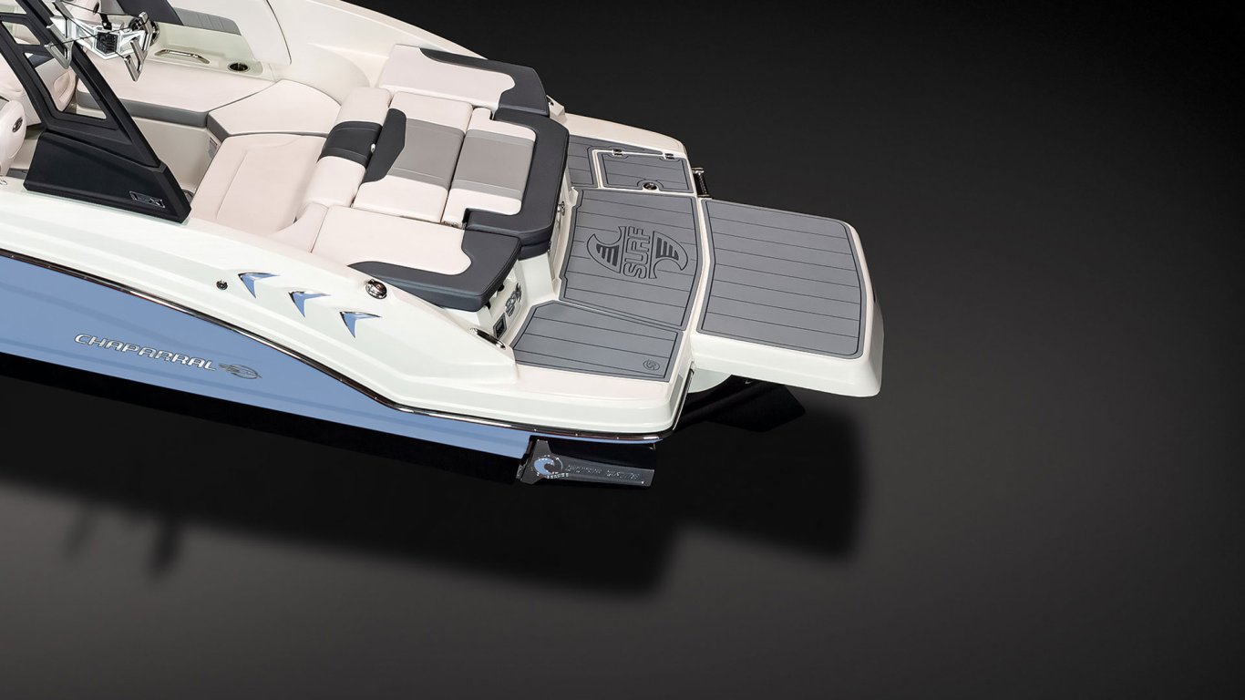 Endless surf means endless fun with the Malibu Surf Gate™. The 23 Surf is equipped with the patented, hydraulically operated Malibu Surf Gate™ which transforms water-sport wakes into the most surfable and customizable waves possible. Spend more time on the water with the ability to transfer from side to side without having to change the ballast weight. Control the direction of the wake easily from the touchscreen controls or from the optional wristband. |